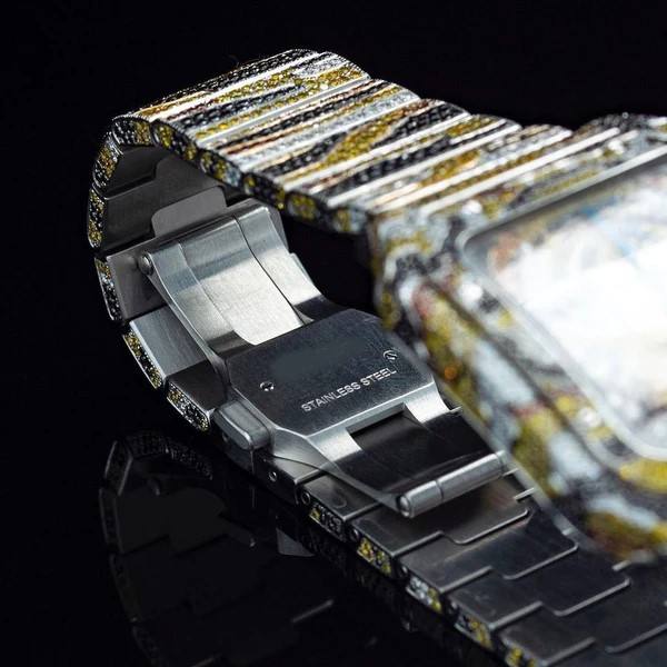 Vidhi Luxury Yellow Gold White Gold Square Dial Glass Moissanite Iced Mechanical Analog Watch Silicone Titanium Stainless Steel