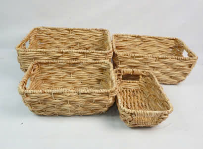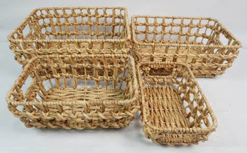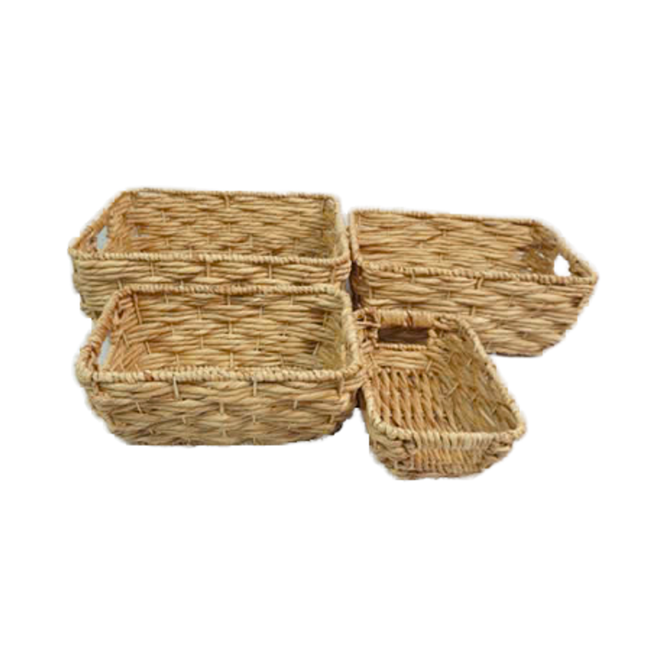 Viet Anh Eco-Friendly Set of 4 Rectangular Water Hyacinth Storage Baskets with Flexible Cut-Out Handles