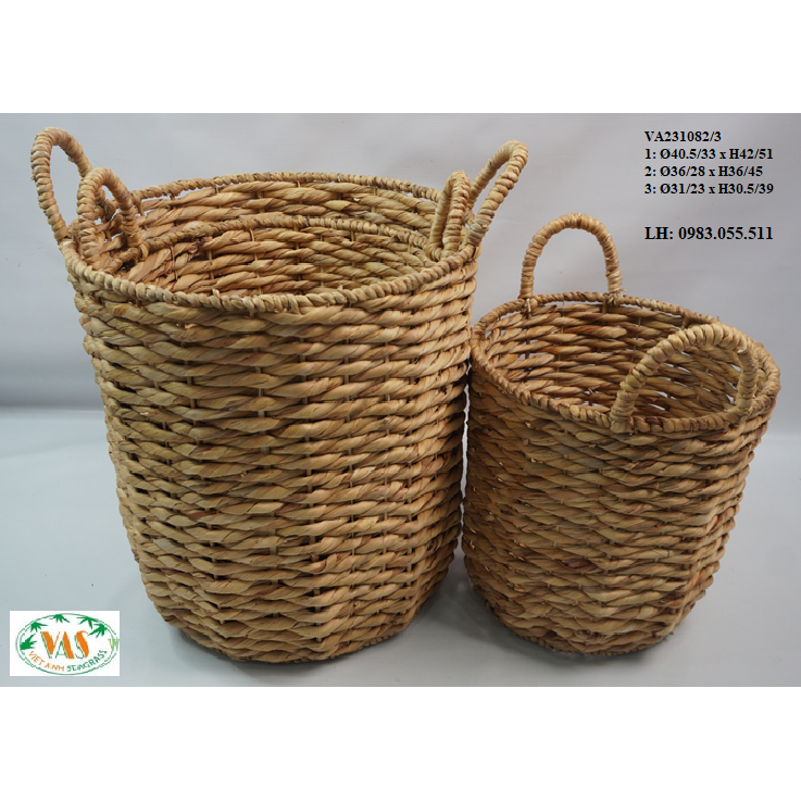 Viet Anh Hand-knitted Natural Water Hyacinth Straw Wicker Woven Storage Organized Handle Baskets