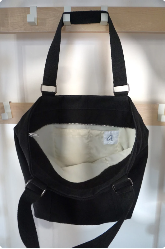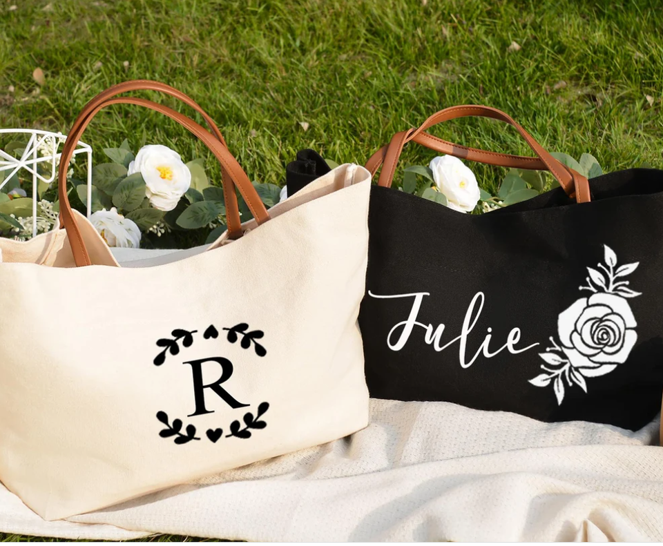 Viet Nam Custom Printed Lightweight Canvas Tote Bag Black Fabric Inner Lining Beaded Chains Letter Decoration Zipper Closure