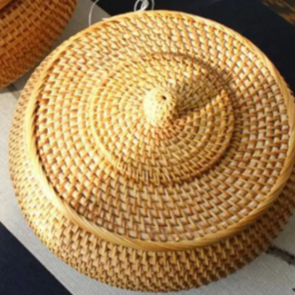 Viet Nam Plate Pattern Rattan Wicker Craft Foldable Handle Flower Gift Basket Hand Woven Storage Basket for Home Decoration