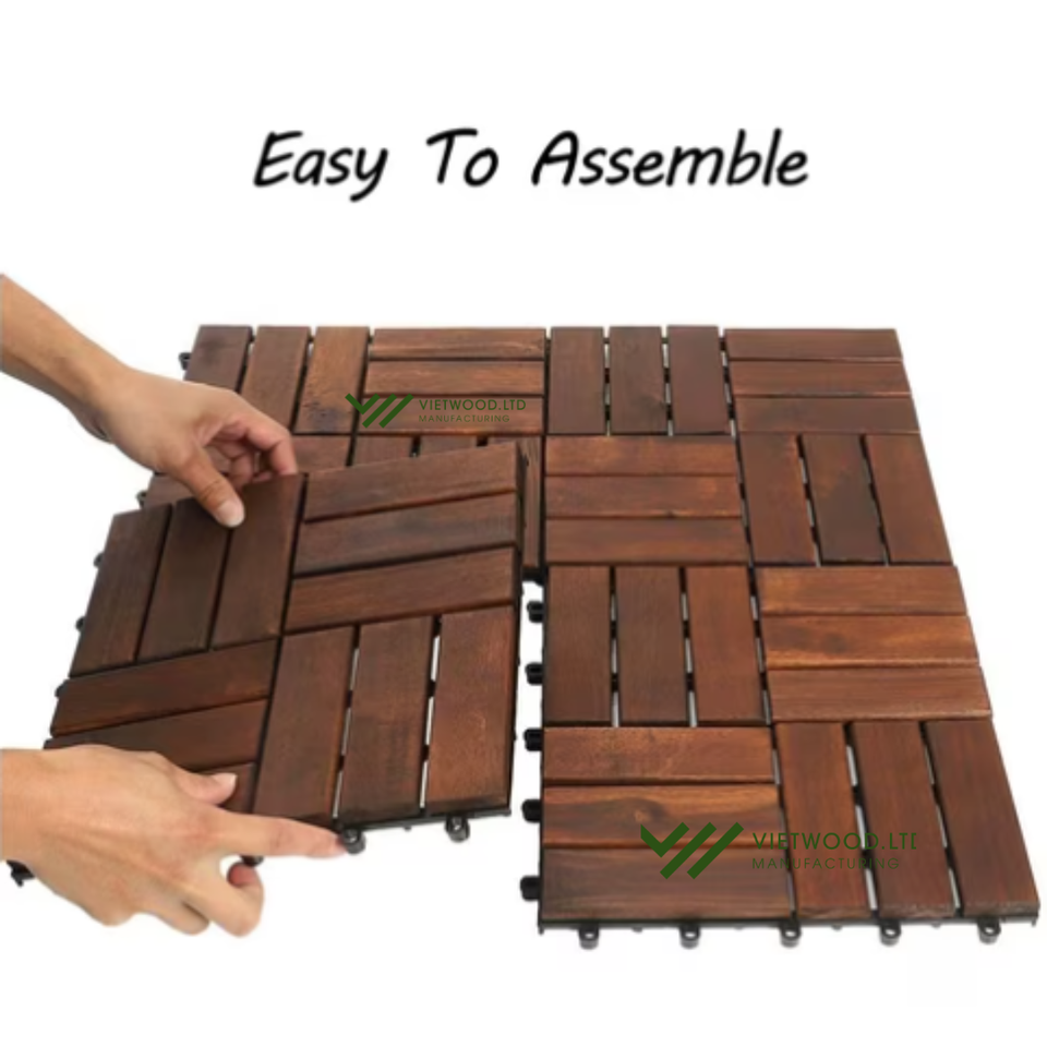 Viet Wood New Style Interlocking Outdoor Patio Deck Acacia Tiles or Acacia Wood Parquet Flooring or Any Other Wood