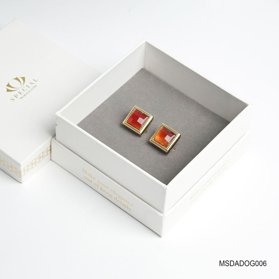 Vietnam Accessories 18K Gold-Plated Cufflinks for men with Fengshui Gemstone Faceted Red Agate MSDADOG006 Tinh Vu Collection