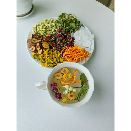 Vietnam Blended Dry Fruit and Flower Scented Green Tea Fresh Healthy Slimming Detox Cup Sachet Bottle Bulk Flavor Tea