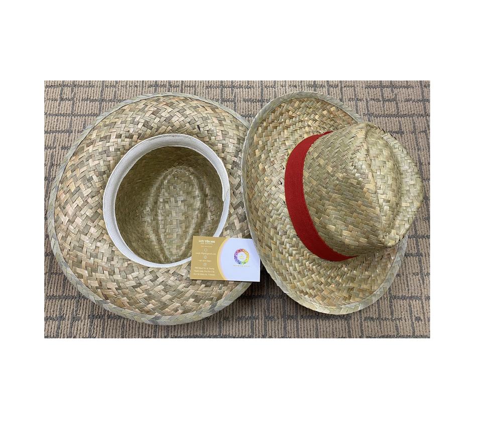 Vietnam Brown Palm Leaf Straw Hat With Braided Brim Ribbon Logo for Daily Use and Home Party Wedding Decorations