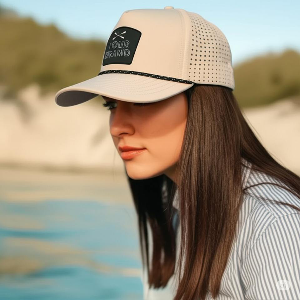Vietnam Cap Manufacturer 5 Panel Custom Waterproof Golf Hat For Men With Rubber Patch Logo Perforated Baseball Curved Brim