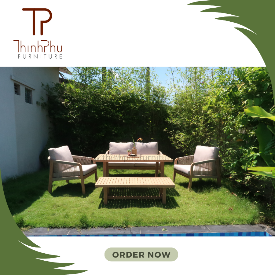 Vietnam Contemporary Outdoor Wicker Furniture Set ACACIA Wood Garden Sofa for Hotels and Villas for Outdoor Living