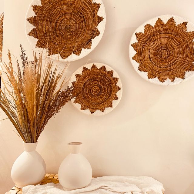 Vietnam Crafts Traditional Water Hyacinth Plant Wall Decoration Baskets Wicker Rattan Seagrass Decor Art Hanging Plate Straw