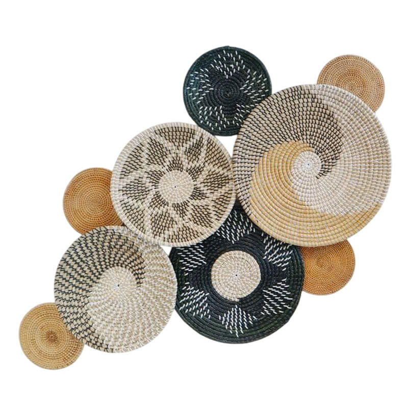 Vietnam Custom Seagrass Wall Hanging Decor Basket Boho Wall Art Wicker Round Hanger Wall Plate Set of 16 pcs with many sizes