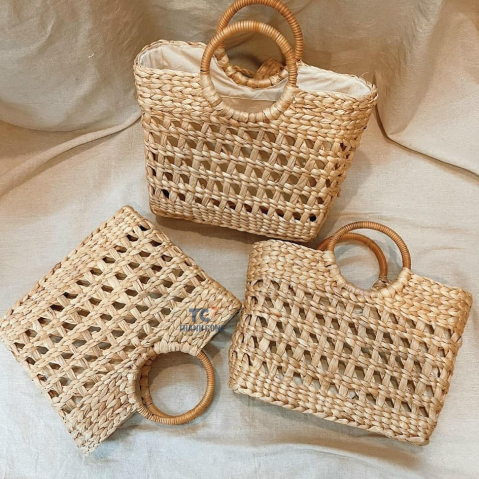 Vietnam Customized Design Handwoven Water Hyacinth Rattan Straw Tote Bag Handmade Ladies Women Boho Summer Bag