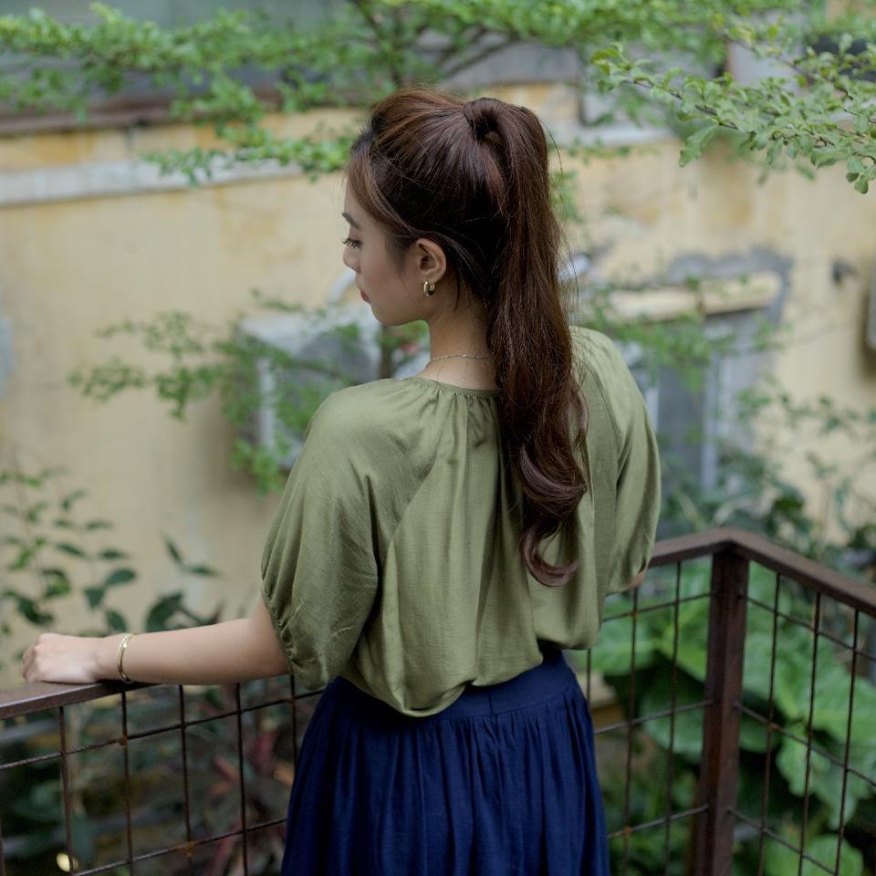 Vietnam-Designed Loose Fit Rayon Blouses Women Woven Plaid Pattern Small Button Opening Formal Neckline Plain Dyed Breathable