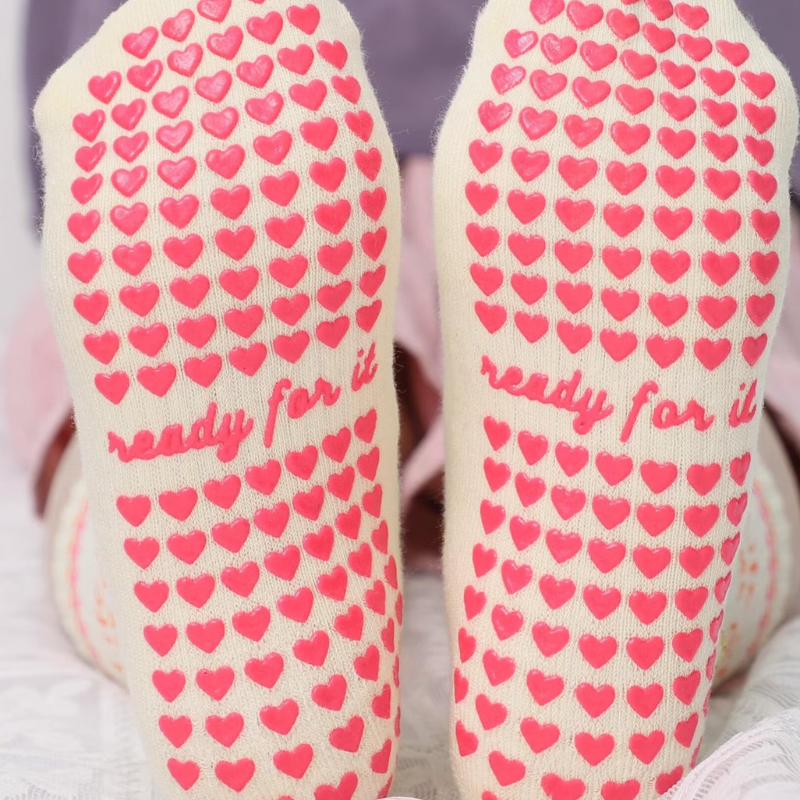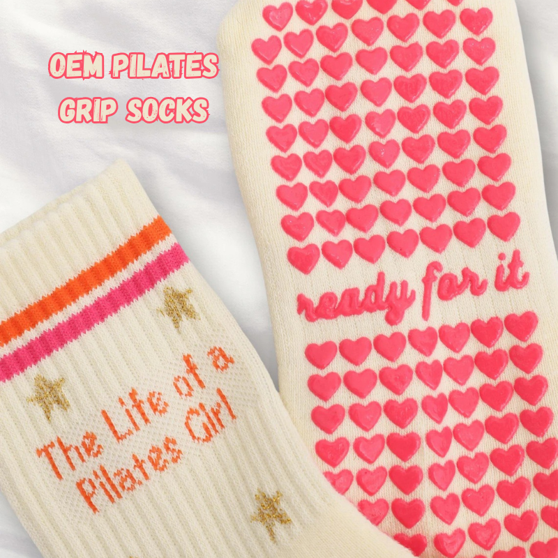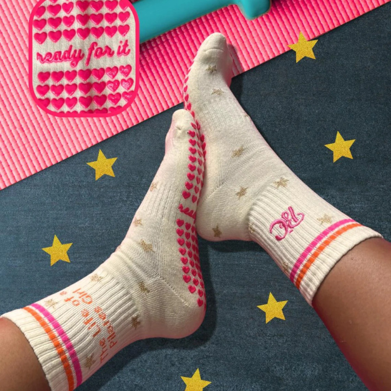 Vietnam Factory Custom Twinkle Star Jacquard Heart Grip Socks Ribbed Cuff Crew Length Designed for Pilates Yoga Barre Wholesale