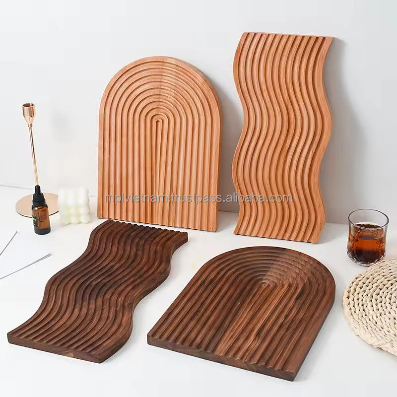 Vietnam Factory Large Organic Wood Kitchen Chopping Block Trendy Wave Pattern Cutting Board Polished Eco-friendly Juice Bowl