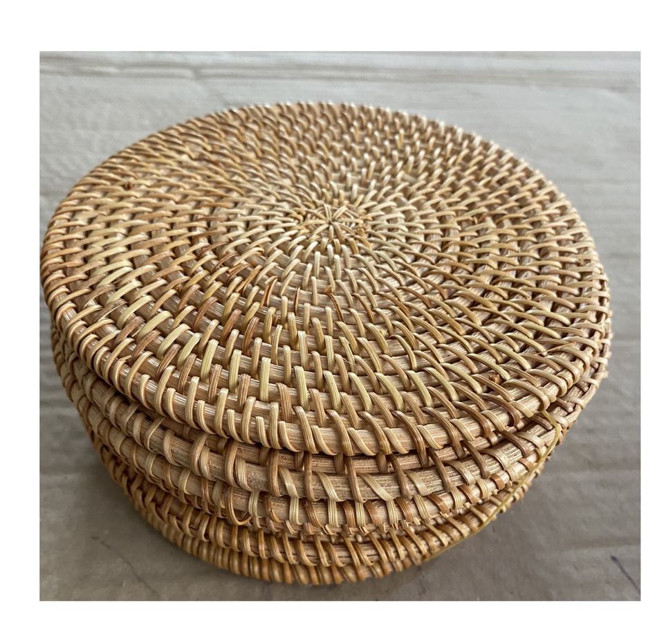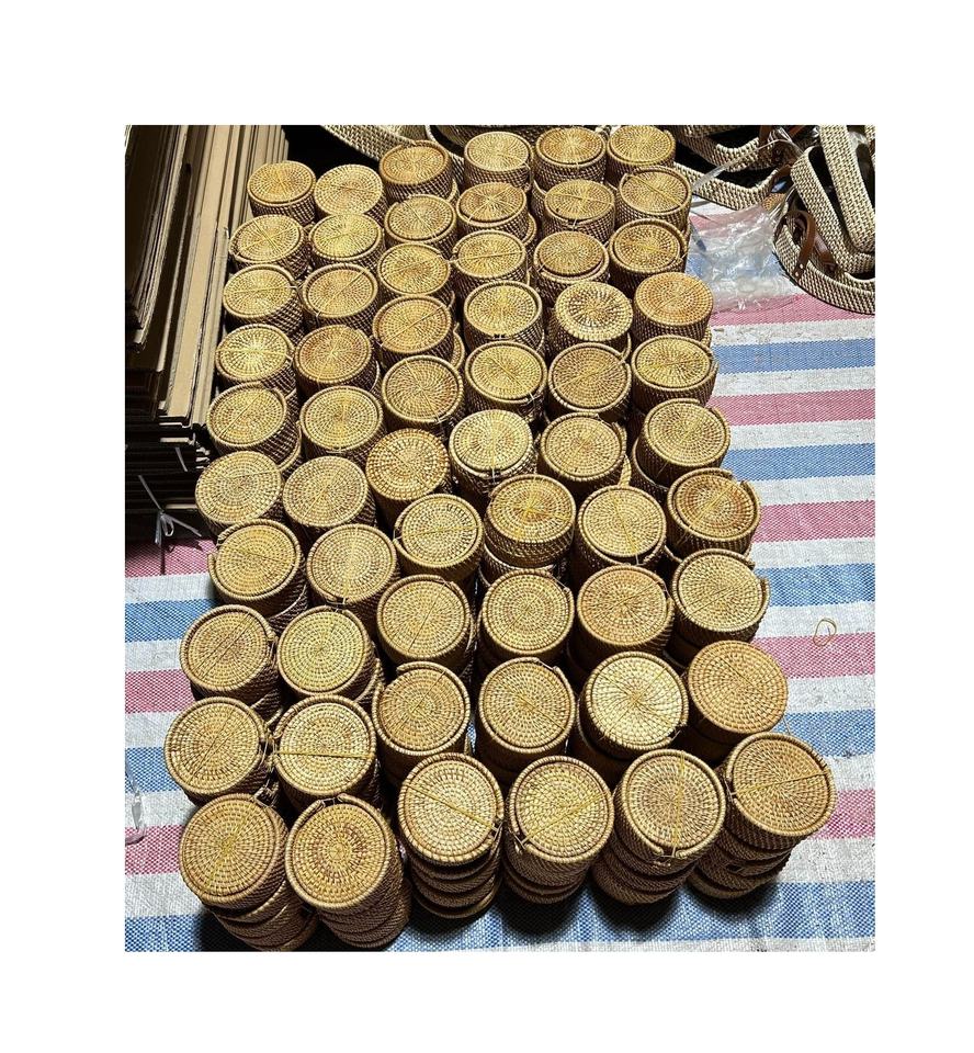 Vietnam Factory Natural Rattan Coaster Set Large Eco-Friendly Bamboo Drink Coaster Holder Cup Mat Braided Ornamental Pattern for