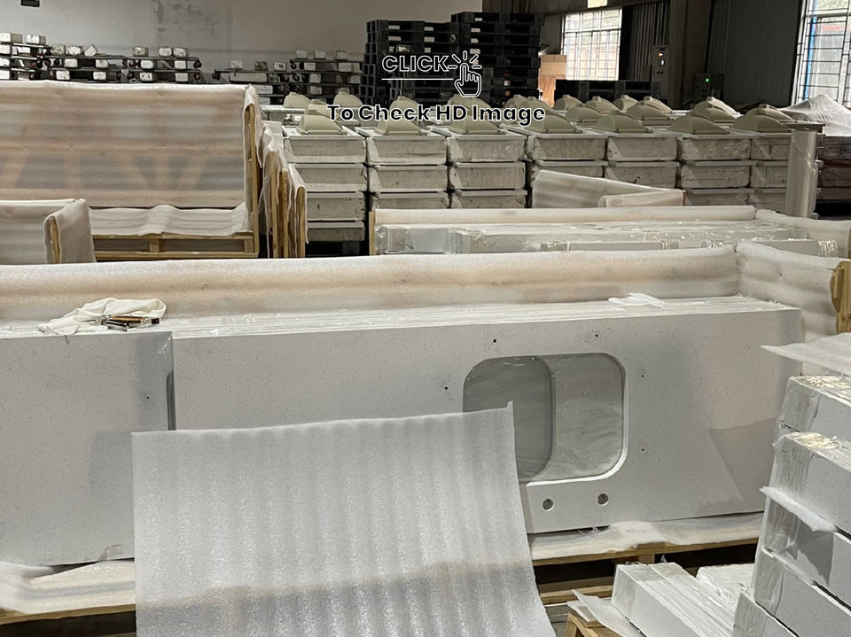 Vietnam Factory Production Line Unique High Quality Big Jumbo Slab Step Cut Fabrication Clear Granular White Quartz Stone Slab