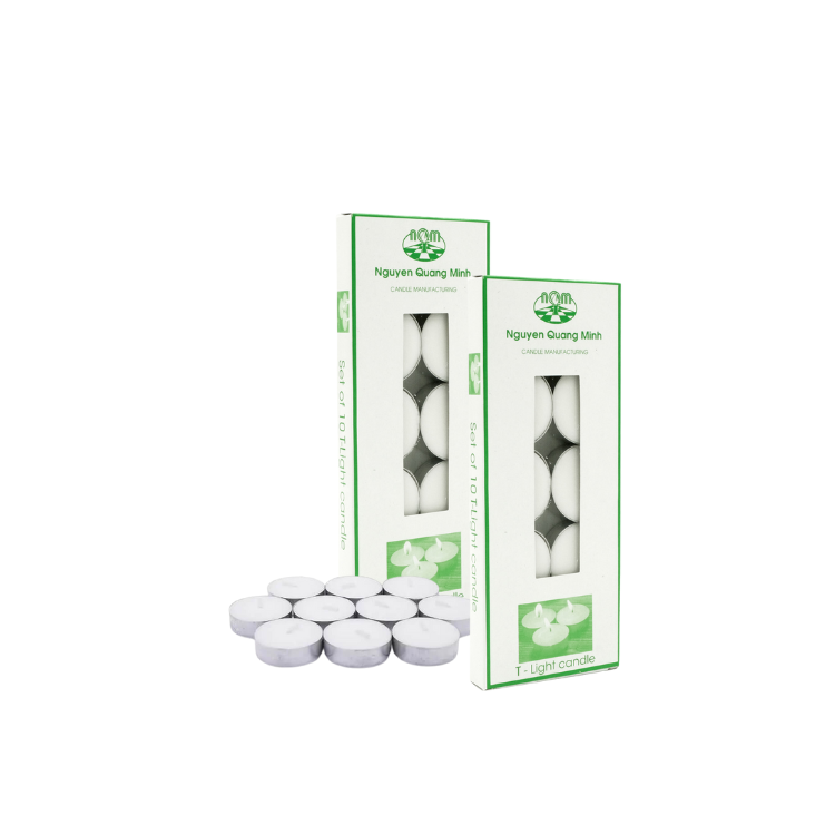 Packaging Description:10 Pressed Tealight Candles in Alu Cups / Packaged in Paper Boxes