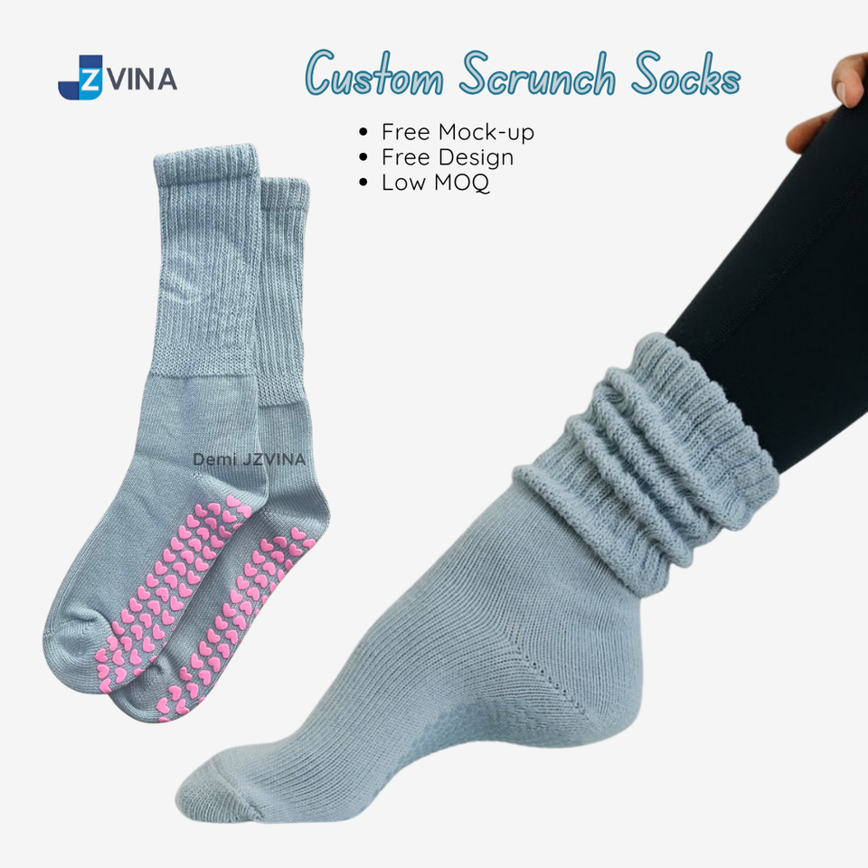 Vietnam Factory Scrunch Pilates Socks with Logo Custom Grip Multi-color Warm Slouchy Grip Socks for Women Pilates Yoga Reformer
