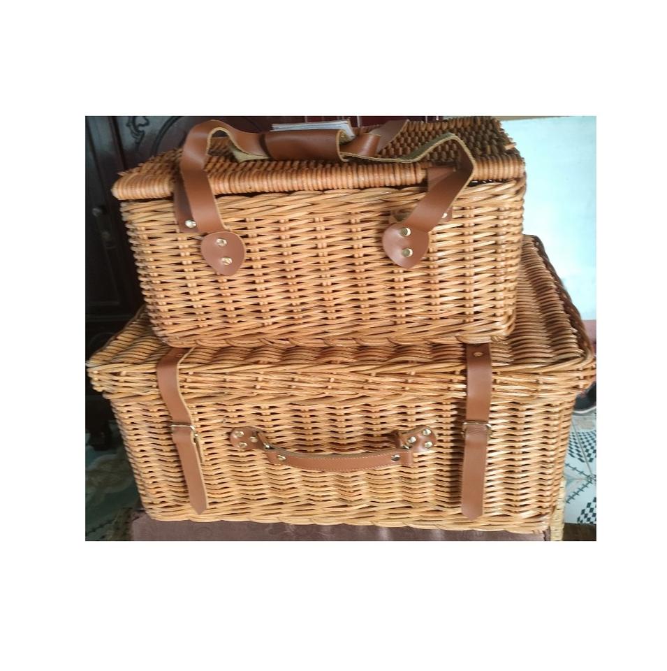 Vietnam Factory Vintage Rattan Wicker Picnic Basket With Handle and Leather for Storage Organization Home Hotel Garden Party