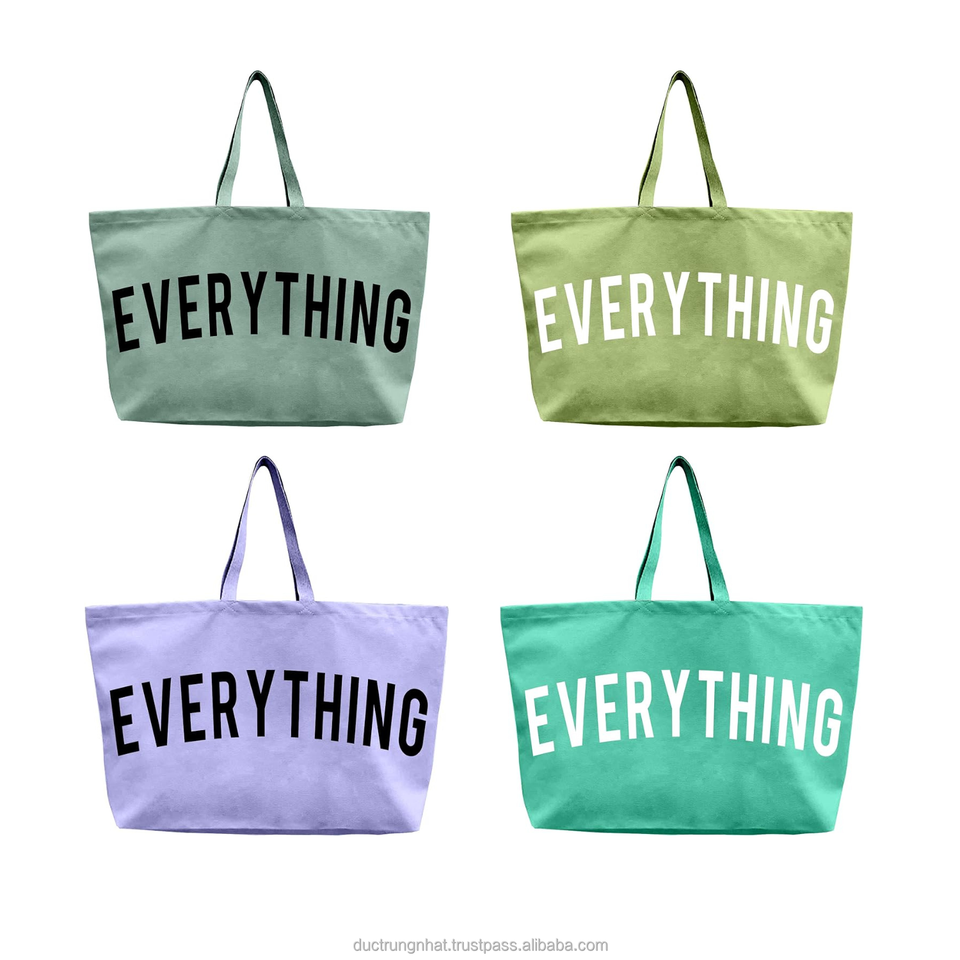 Vietnam Factory Wholesale Canvas Tote Bag Eco Recycled Letter Pattern Cotton Canvas Tote Shopping Bags with Custom Printed