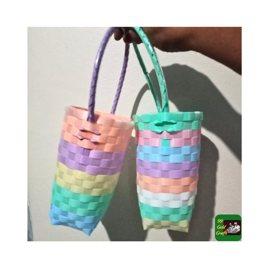 Vietnam Factory Woven Plastic Tumbler Hanging Bag PVC Plastic Bottle Carrier Cup Holder Vietnam Exporter Cheap Price