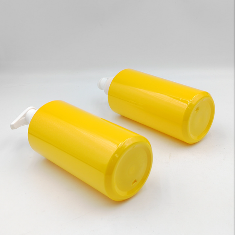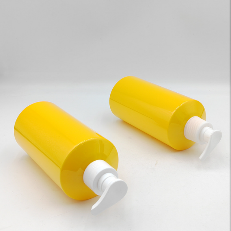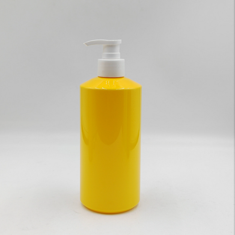 Vietnam Factory Yellow 500ml PET Plastic Shower Gel Shampoo Bottles Empty Bottles with Head Pump for Cosmetics Packaging Bottles