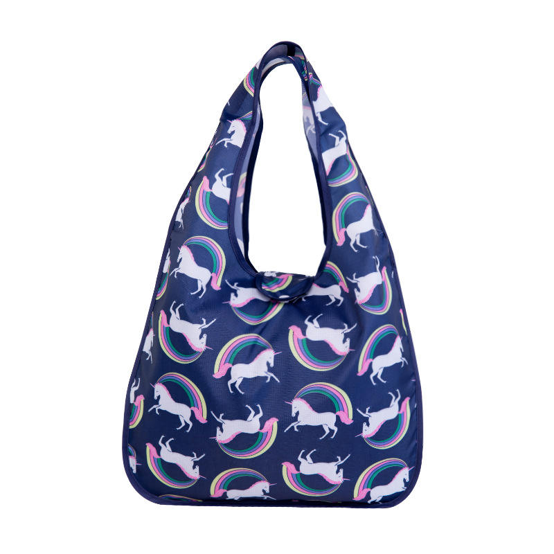 Vietnam Factory's Portable Grocery Bag Reusable Polyester Folding Shopping Bag with Cartoon Pattern for Storage Promotional Item