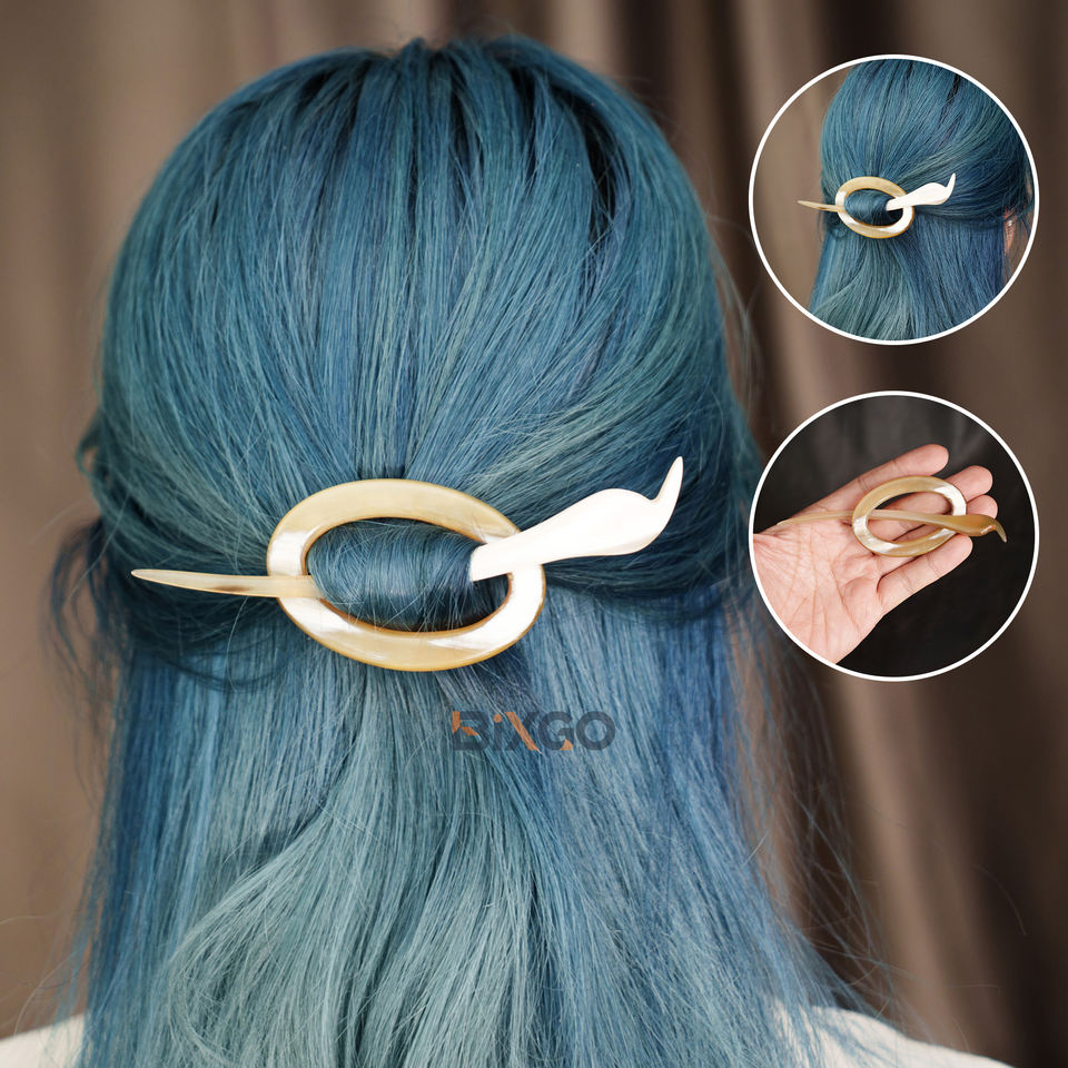 Vietnam Handicraft Custom Wholesale Oval-Shaped Ox Horn Wood Shawl Pin Styling Accessory ELEGANT BIXGO Hot Sale Natural Beauty