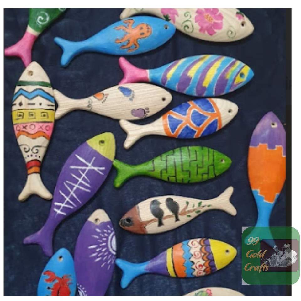 Vietnam Handmade Carved Wooden Fish Decor, Unpainted Craft Toy for Kids DIY Drawing, Coastal Wall Hanging Home Decoration