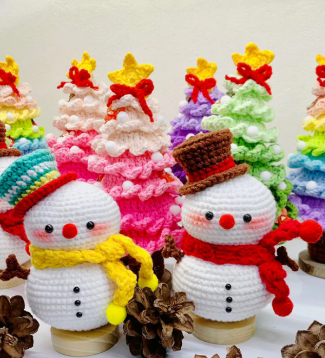 Vietnam Handmade Crochet Wool Snowman Ornaments | Knitted Yarn Christmas Decorations for Winter Holiday Decor