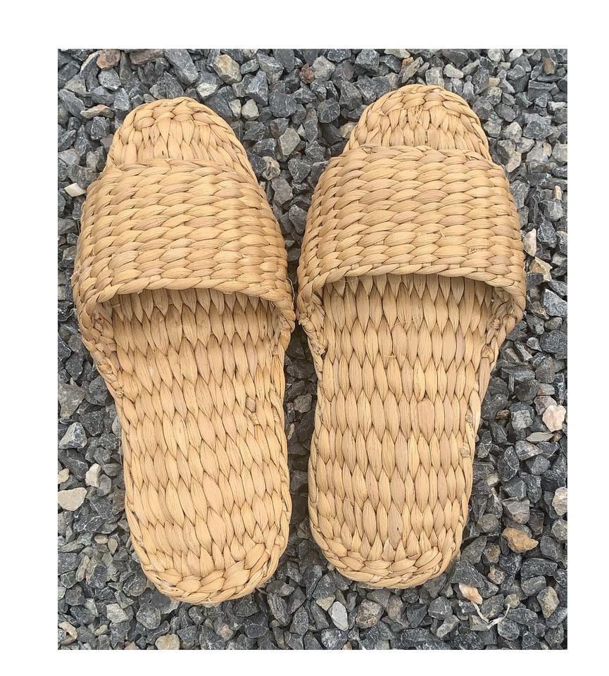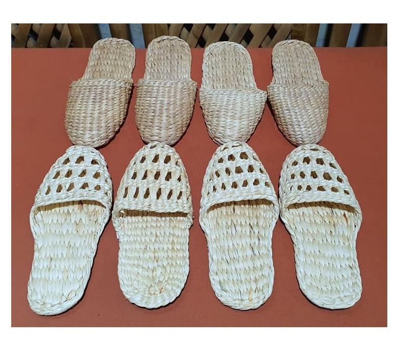 Vietnam Handmade Eco-Fashionable Water Hyacinth Sandals slippers with Pompom Base Use for Beach Hotel Resort Summer Indoor