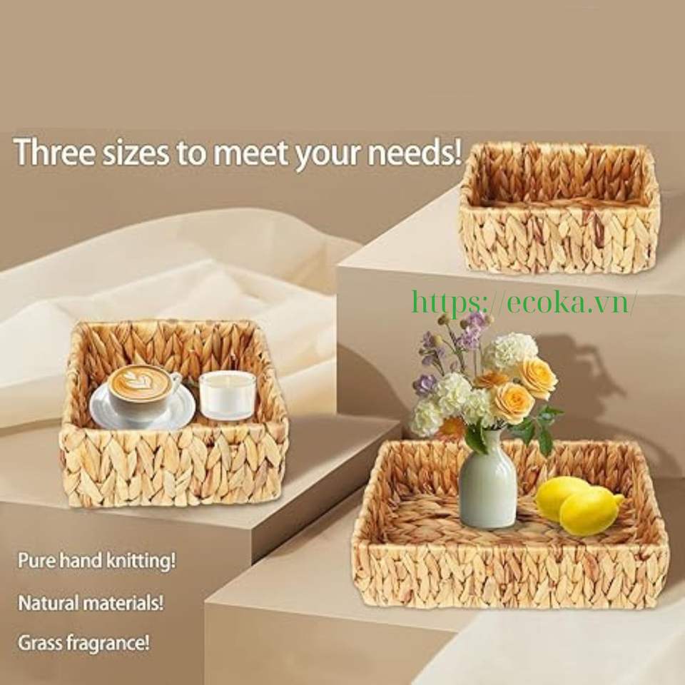 Vietnam Handmade Eco-friendly Water Hyacinth Multifunction Storage Baskets Large Small Natural Pantry Shelf Organizing Set Home