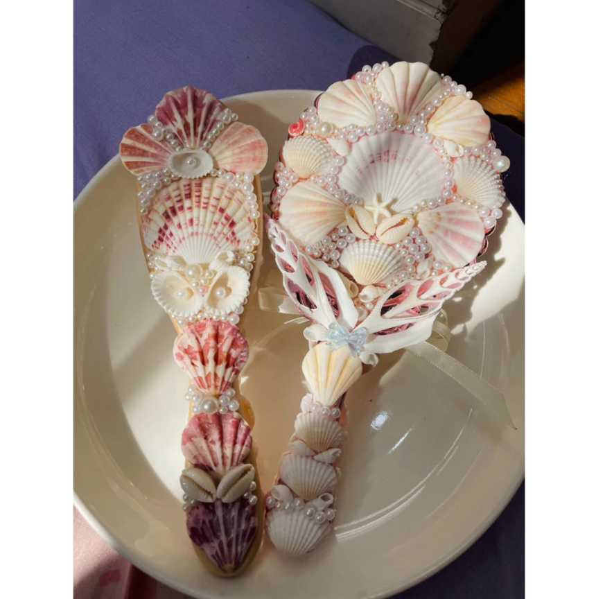 Vietnam Handmade Hair Brush with Natural Sea Shells and Ribbon Bow for Hair Styling and Gift Use