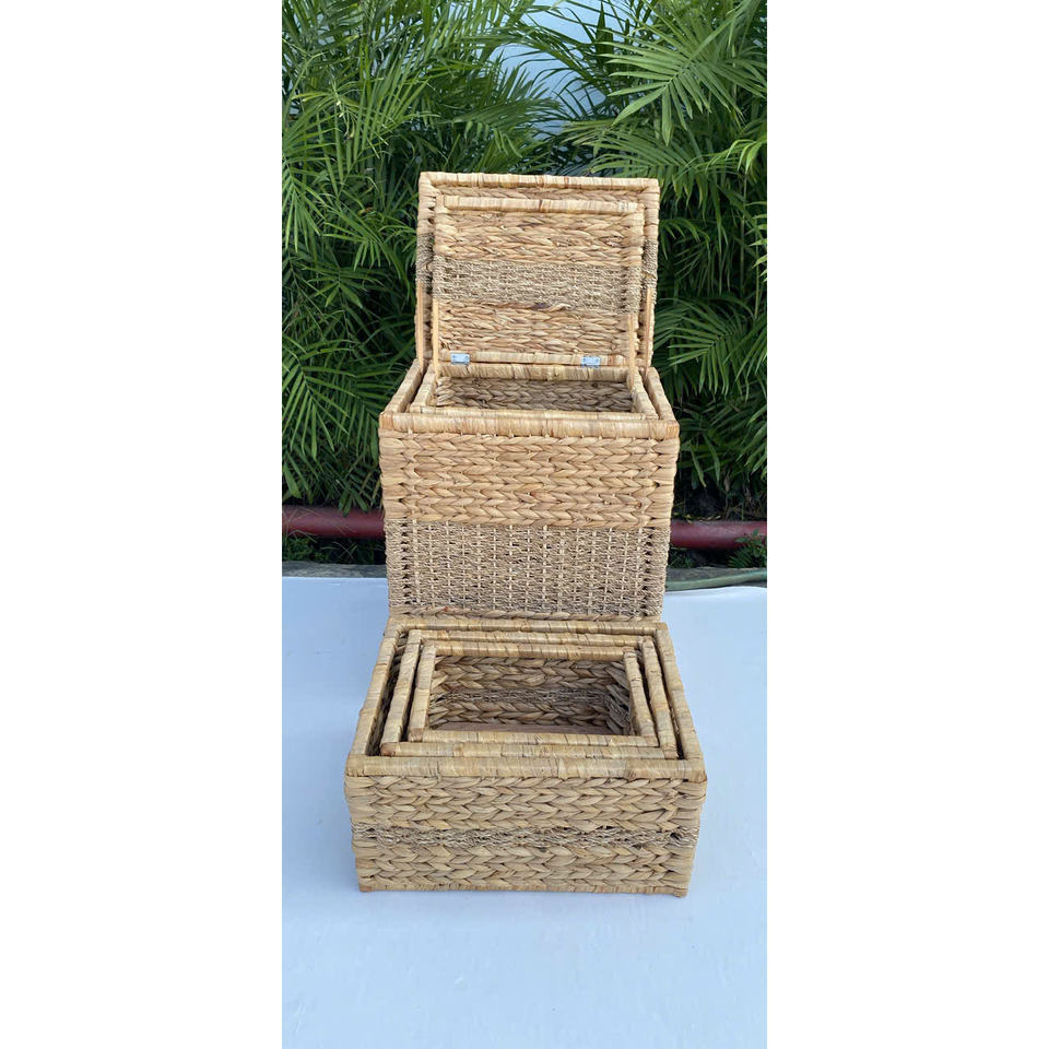 Vietnam Handmade Natural Water Hyacinth Woven Basket Colored Sedge Decorative Rectangular Tray with Lid for Storage