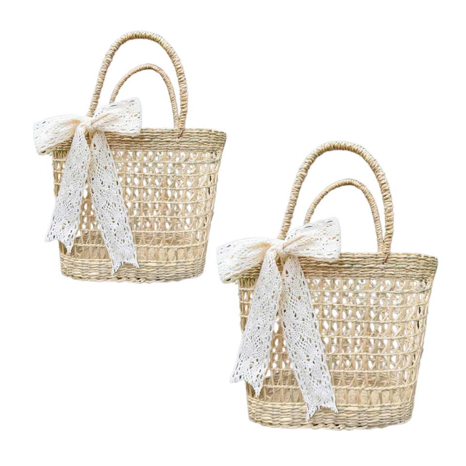 Vietnam Handmade SEAGRASS HANDBAG with Bow Handwoven and Personalized Valentine's Day Gift Baskets Straw Bag