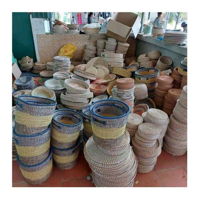 Vietnam Handmade Seagrass Plate Basket Decorative Wall Hanging Natural Rattan Bamboo Wicker Rustic Eco-Friendly for Home