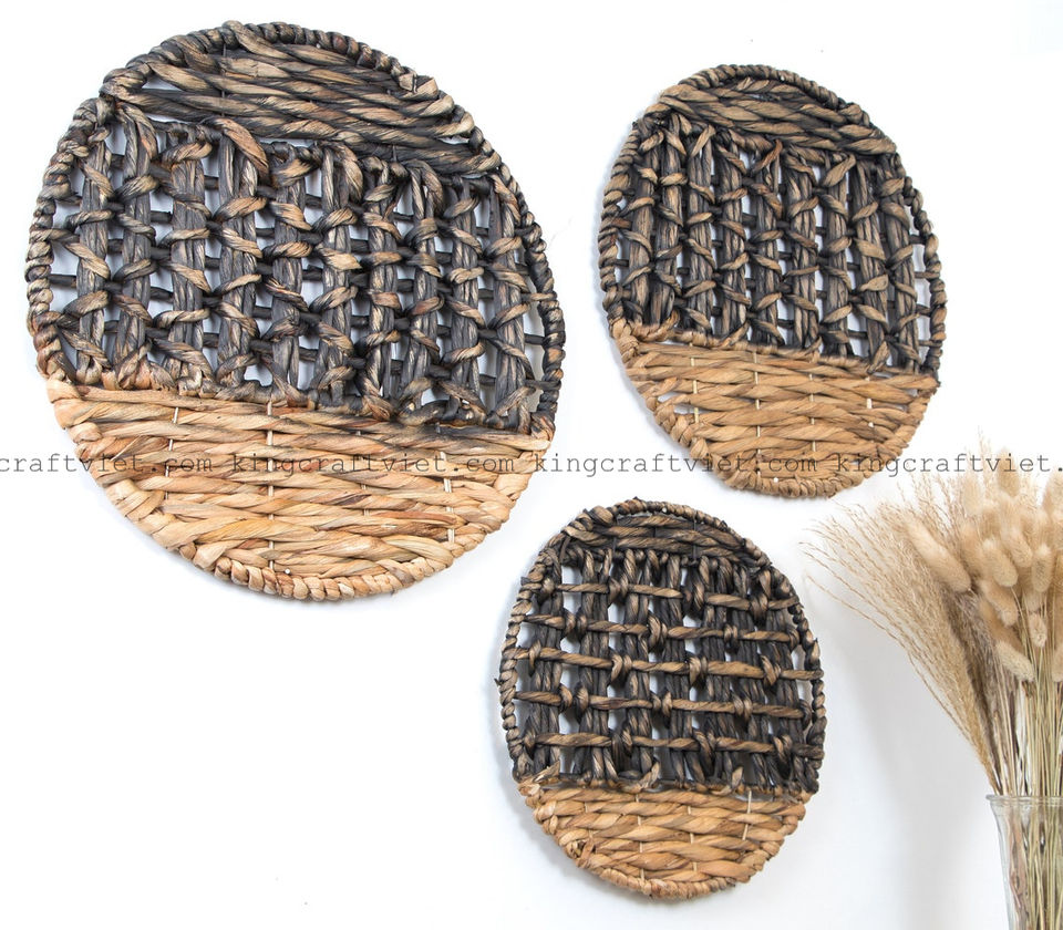Vietnam Handmade Water Hyacinth Wall Hanging Decoration Woven Rattan Basket Seagrass Basket Wall Mirror Decor Art Style Home Use