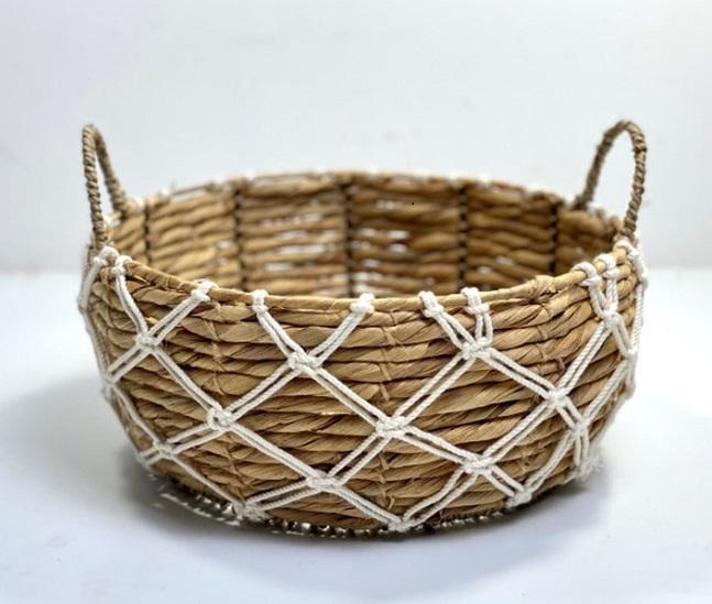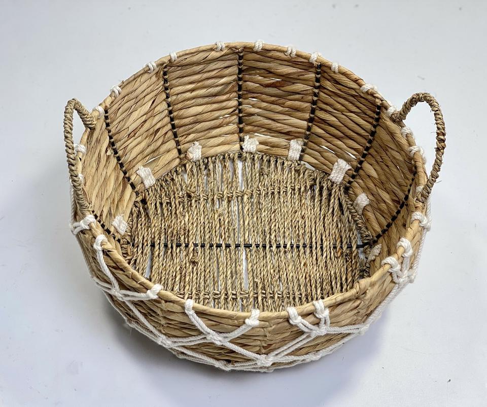 Vietnam Handmade Woven Basket Handles Eco-Friendly Water Hyacinth Vintage Organizer Multifunction Natural Fiber Storage Basket