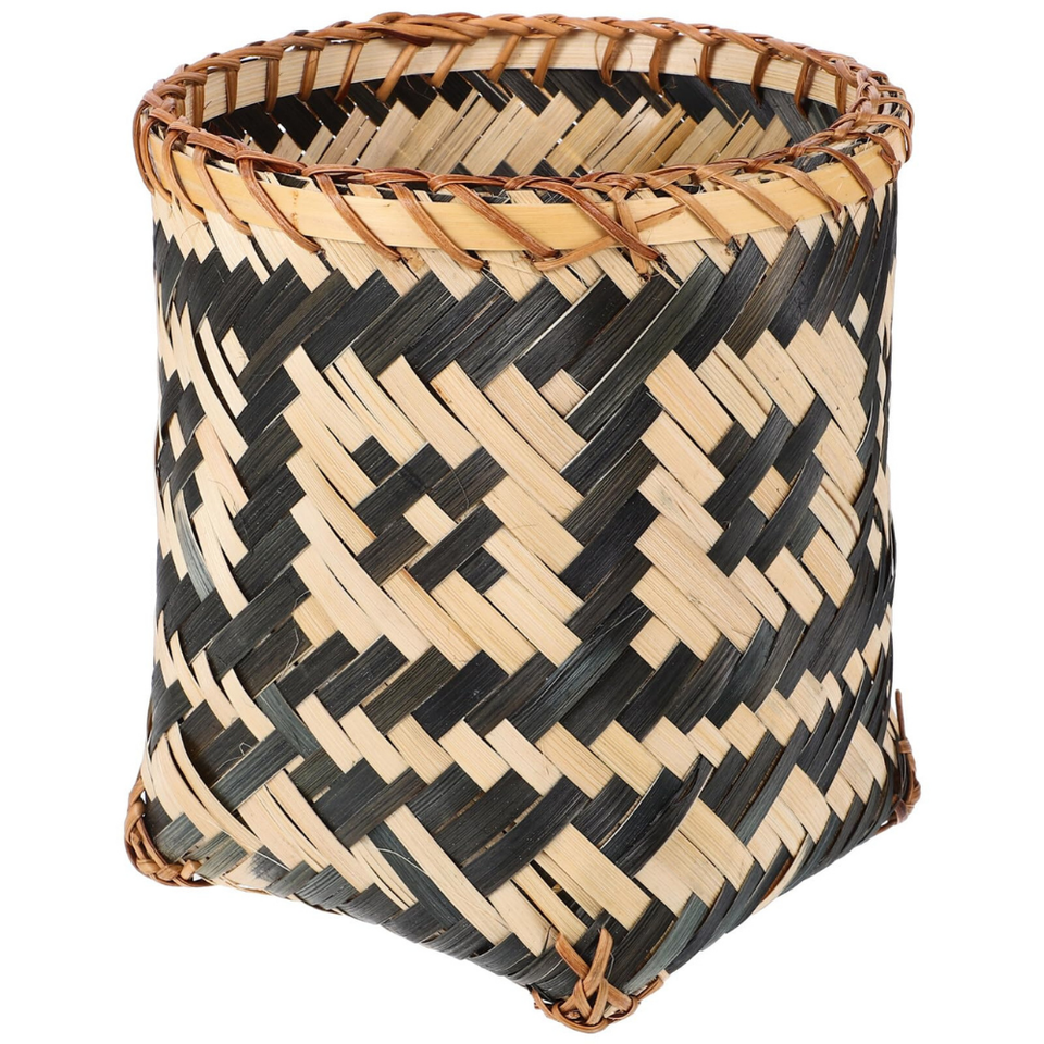 Vietnam Handwoven Bamboo Basket with Zigzag Design New Kitchen Item with Handle for Holding Cloths Circle Shape