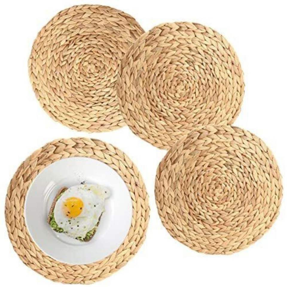 Vietnam Hapro Wholesale Natural Set Woven Water Hyacinth Boho Placemats Seagrass Straw Rattan Round Non-Slip Braided