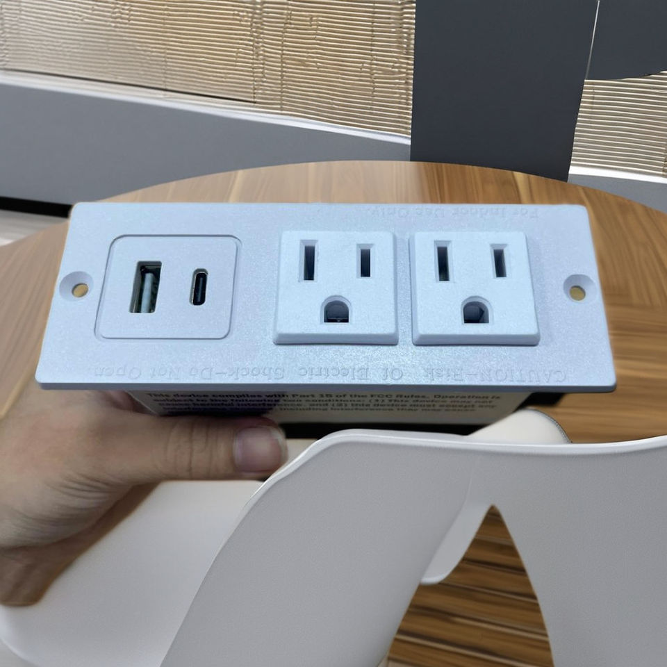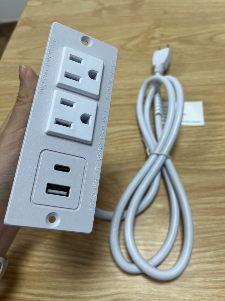 Vietnam-Made 125V US Power Strip in Black and White Recessed with USB and Type C Charging Port