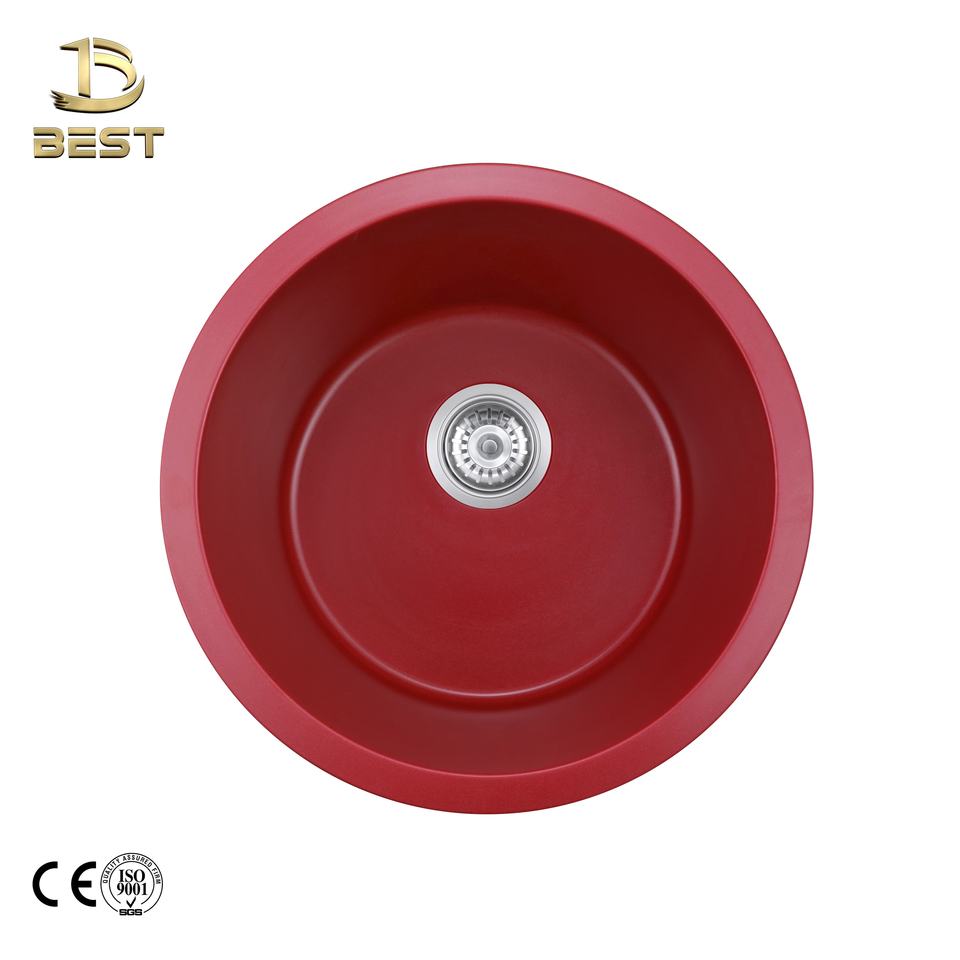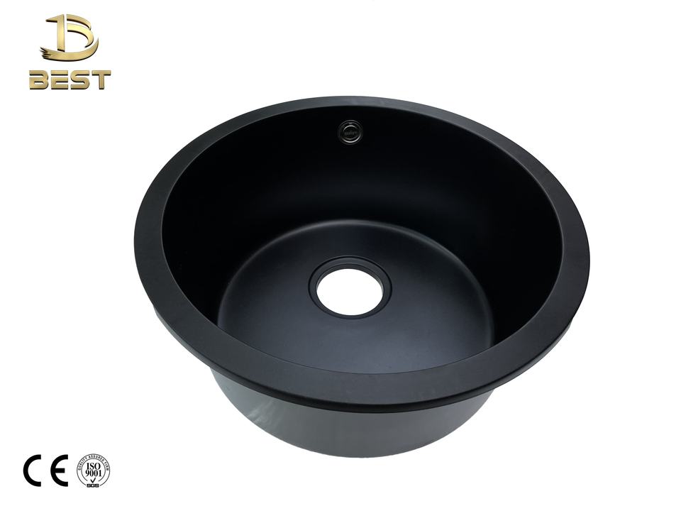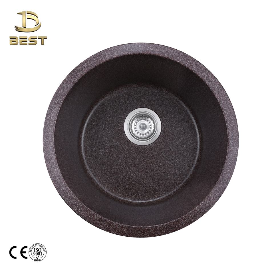 Vietnam-Made Black Quartz Circle Single Bowl Kitchen Sink with Drainer and Faucet Dual Style