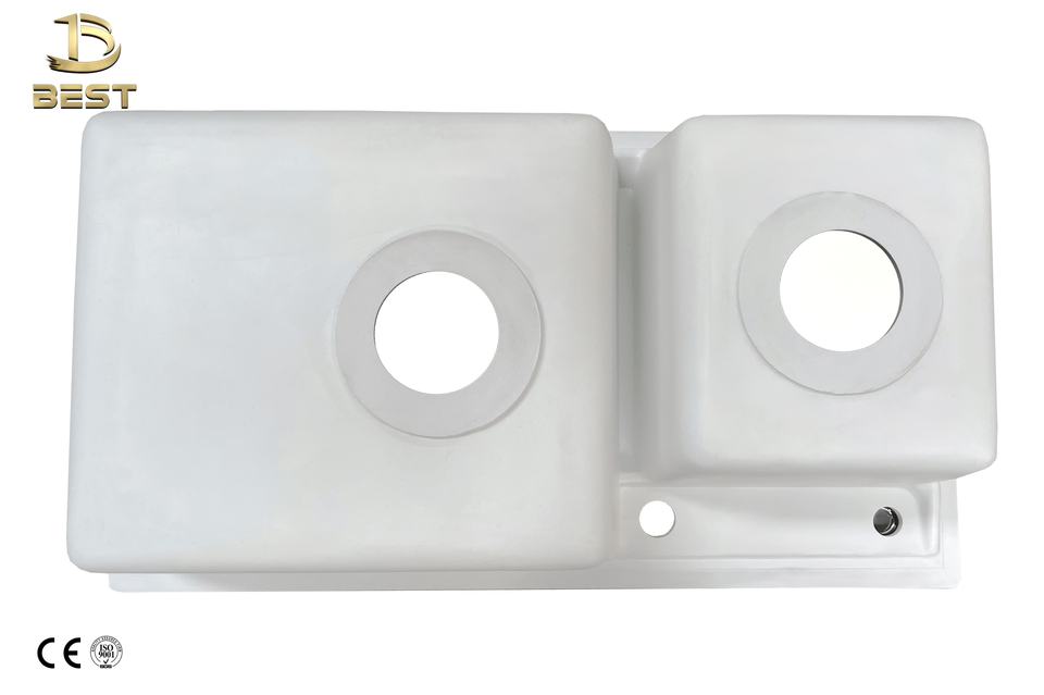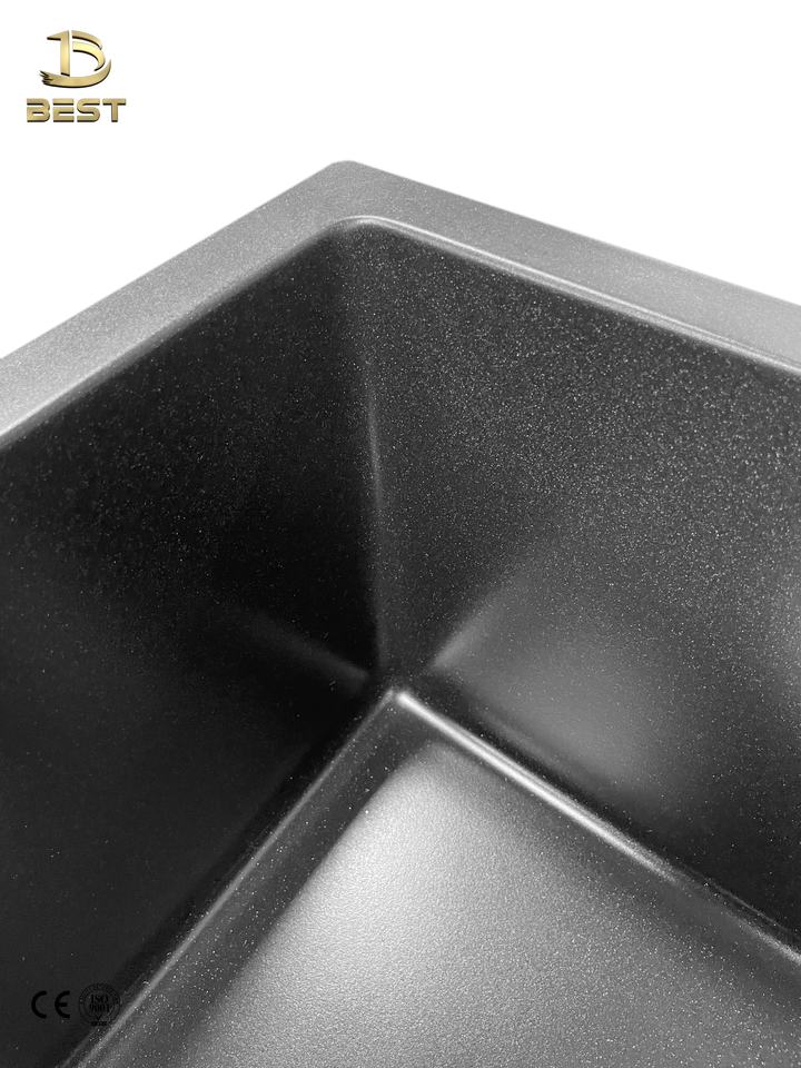 Vietnam-Made Black Quartz Double Bowl Kitchen Sink Granite with Drainer and Faucet