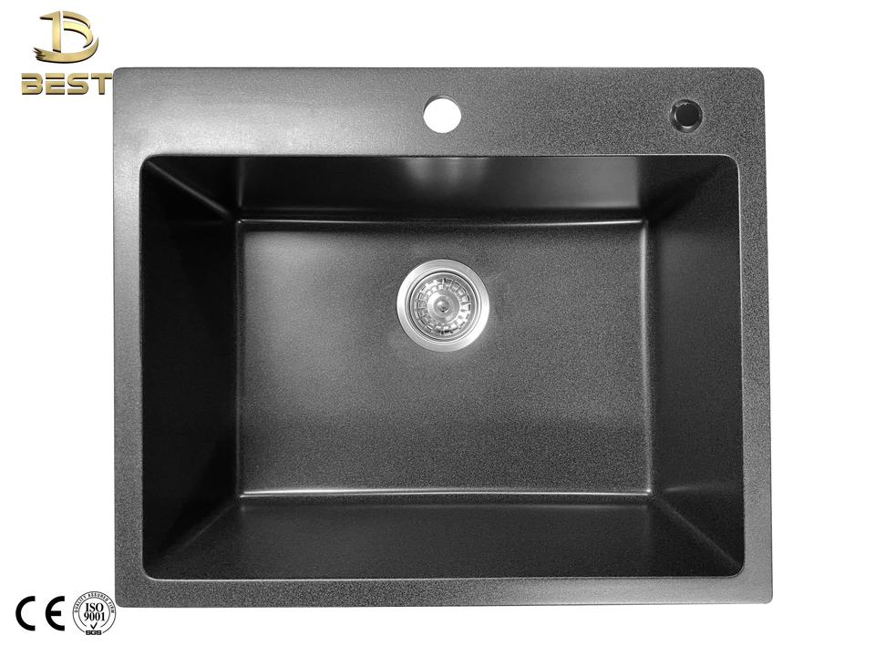 Vietnam-Made Black Quartz Single Bowl Kitchen Sink with Faucet Includes Strainer Accessory Composite Granite Treatment