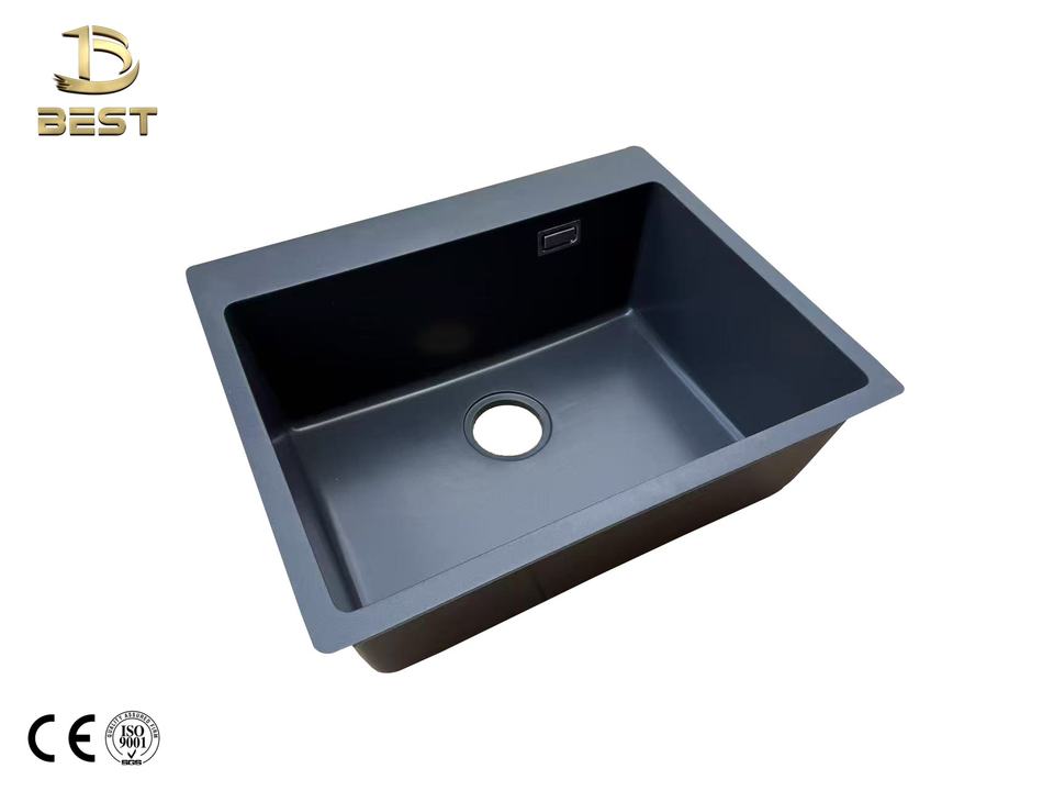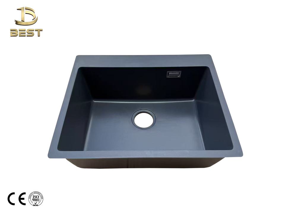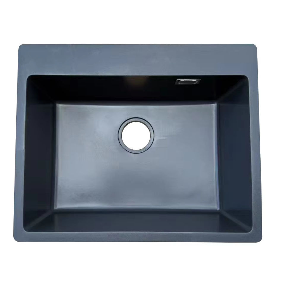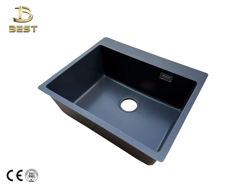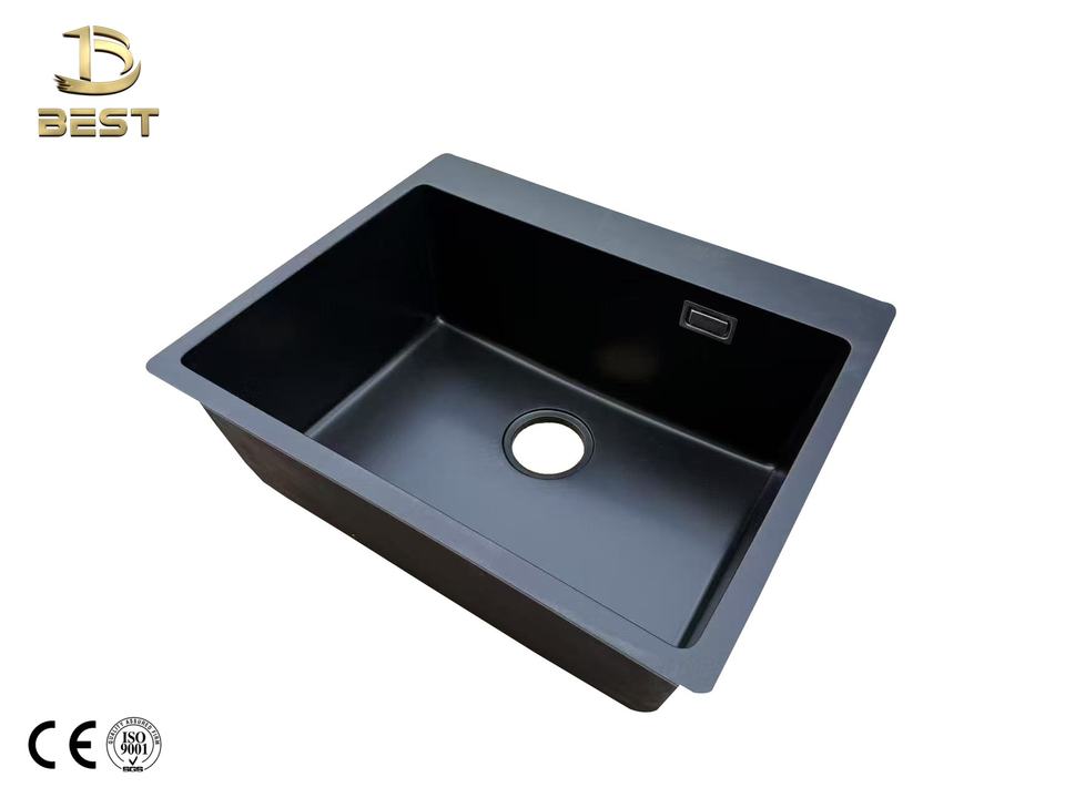 Vietnam-Made Black Quartz Single Bowl Kitchen Sink with Strainer Accessory and Faucet One-Hole Composite Granite Treatment
