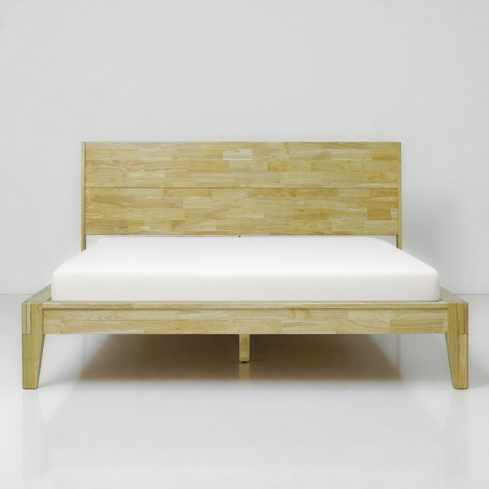 Vietnam-Made OEM/ODM Japanese Joinery Solid Wood Queen size Platform Bed Tool-Free Wooden Bed Frame Minimalist Bedroom Furniture