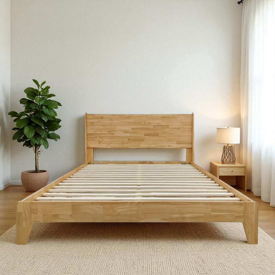 Vietnam-Made Rubberwood Queen Bed Minimalist Design KD Furniture Eco-Friendly Wooden Bed Frame Custom Size Option