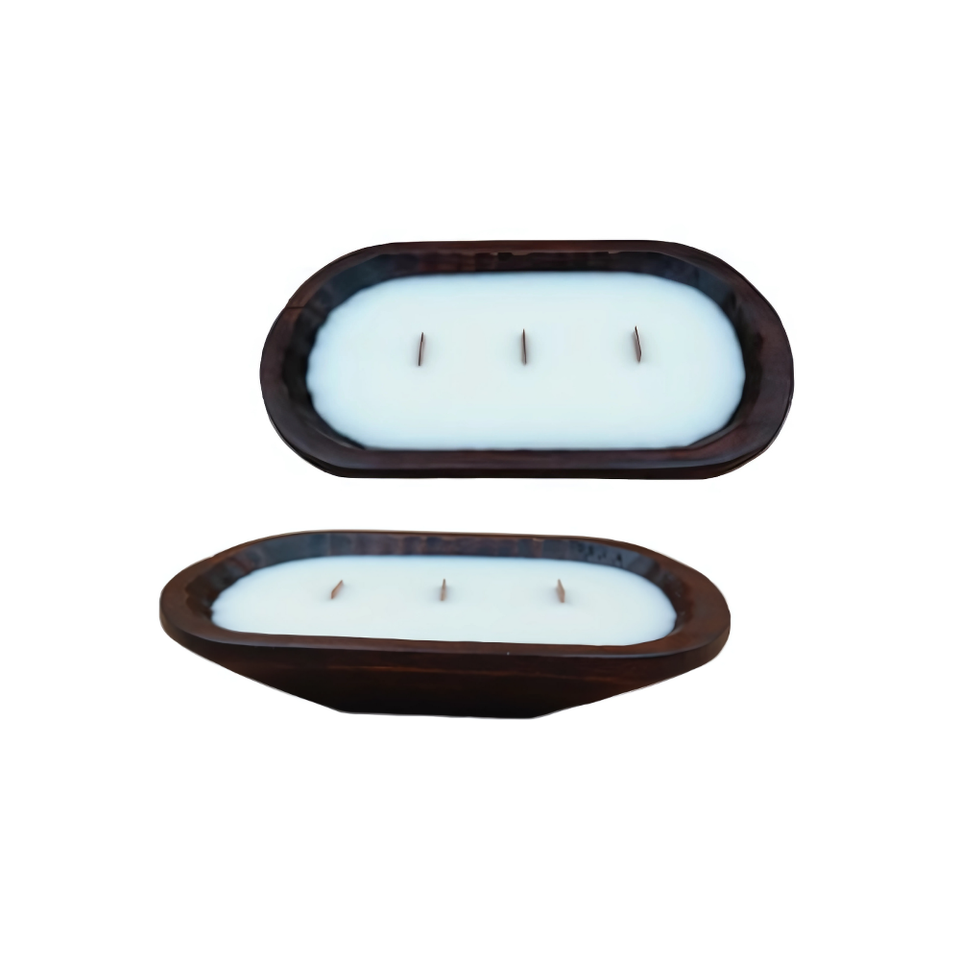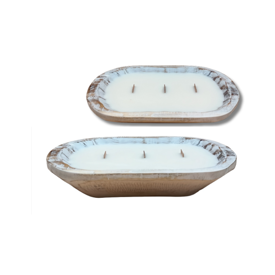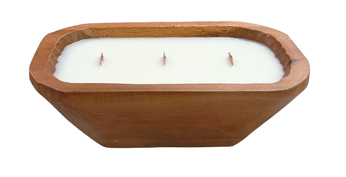 3-Wick Wooden Dough Bowl Candles