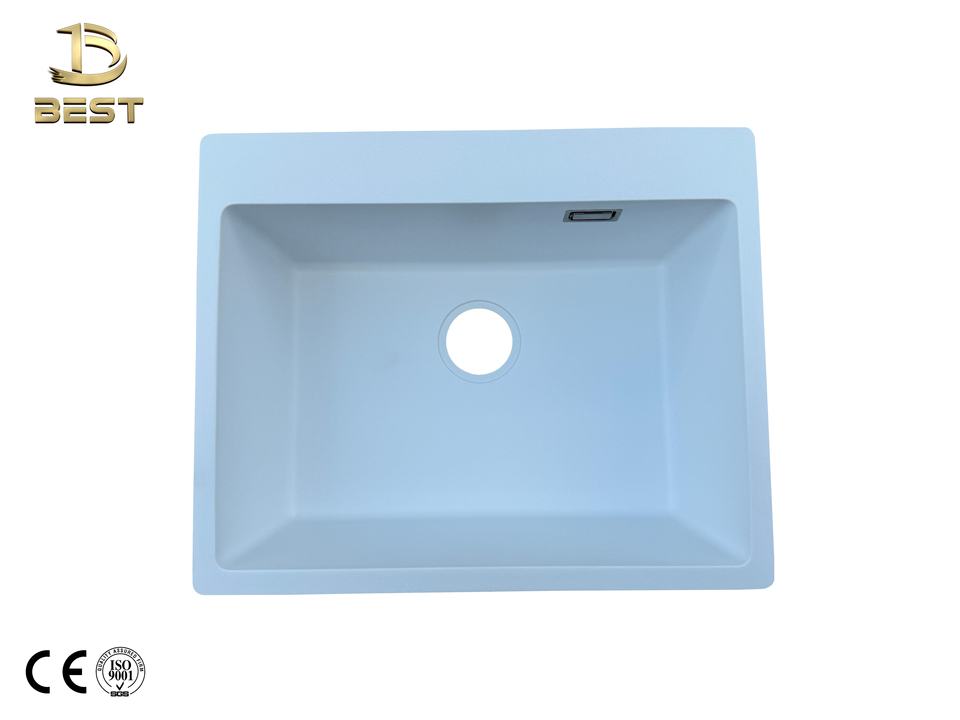Vietnam-Made Square Quartz Single Bowl Kitchen Sink Composite Granite with Overflow Treatment Strainer Accessory Includes Faucet