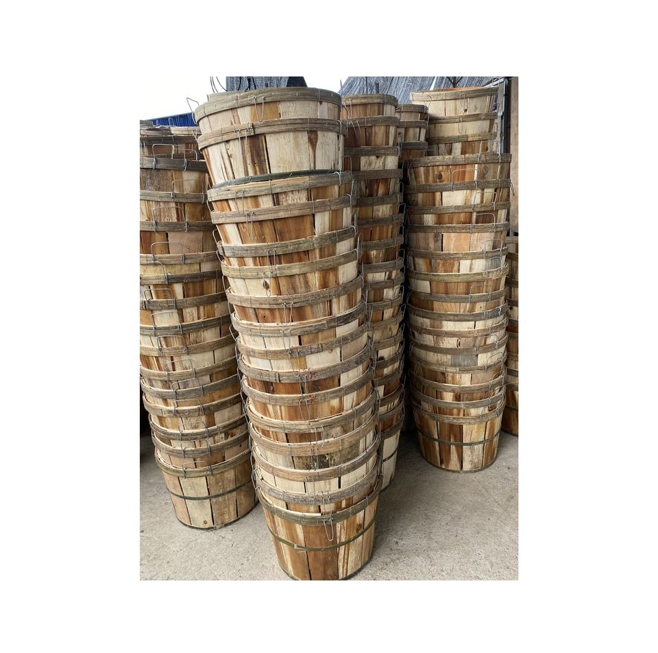 Vietnam-Made Vintage Split Wood Basket Red Fruit Orchard Harvest Bushel Peck Bamboo Lid Fall Autumn Home Decor Boxed Packaging