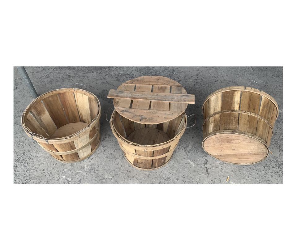 Vietnam Manufacture Old-Time Poplar Half and Full Pine Wooden Bushel Basket Set for Storage fruit seafood Home Garden